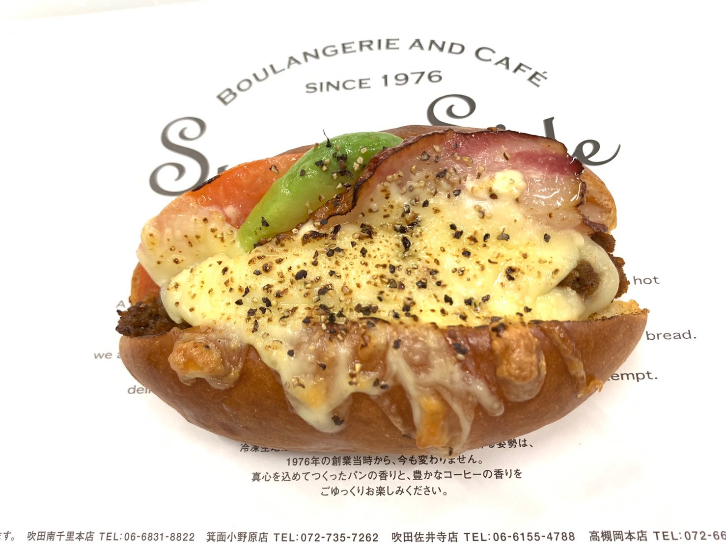 ロール生地にタコスミートを絞り、トマト、アボカド、イベリコ豚をはさみ焼き上げました。