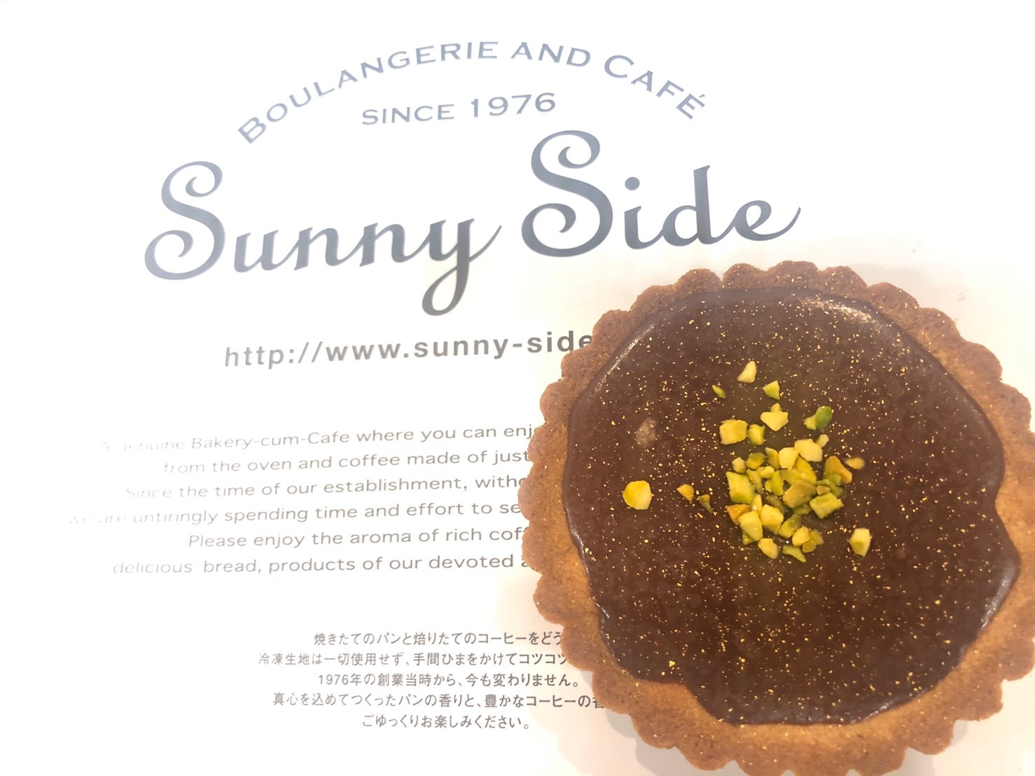 タルト型にガナッシュを流し込み、冷やし固めて、仕上げにピスタチオと金粉をトッピング
