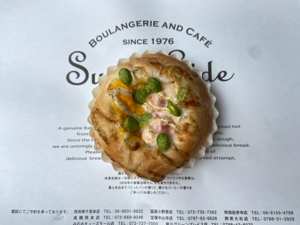 とろとろの半熟卵とたっぷりハムが入ったマヨネーズ、枝豆をのせてブラックペッパーマヨネーズで味を引き締めました。