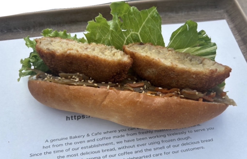 ドックにたっぷりのきんぴらごぼうとビーフコロッケをサンドしました。