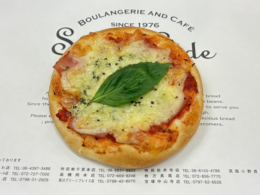 トマトベースのピザにベーコン、バジルをトッピングし、風味豊かに焼き上げました。