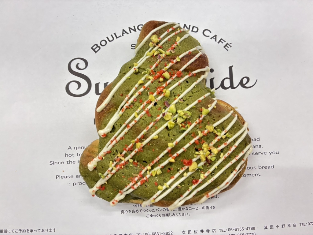 抹茶の菓子パン生地に優しい甘さの抹茶餡を間に挟み、見た目もクリスマスにピッタリな可愛らしい商品です。