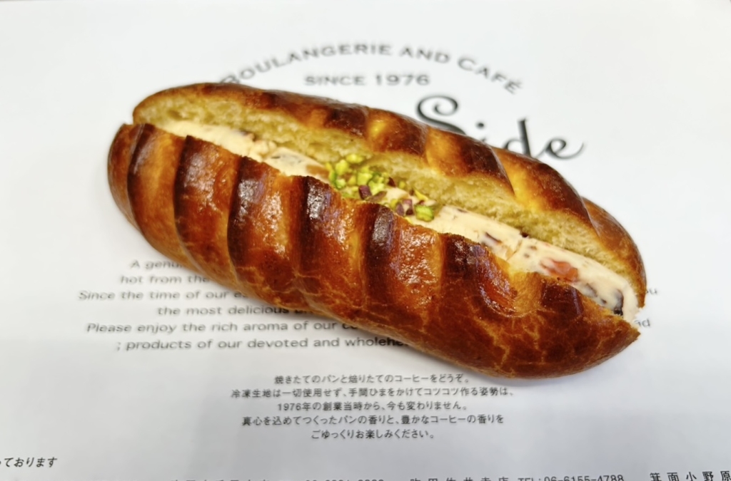 ブリオッシュにクリームチーズ、バター、ミックスフルーツを合わせた自家製クリームを絞りました。