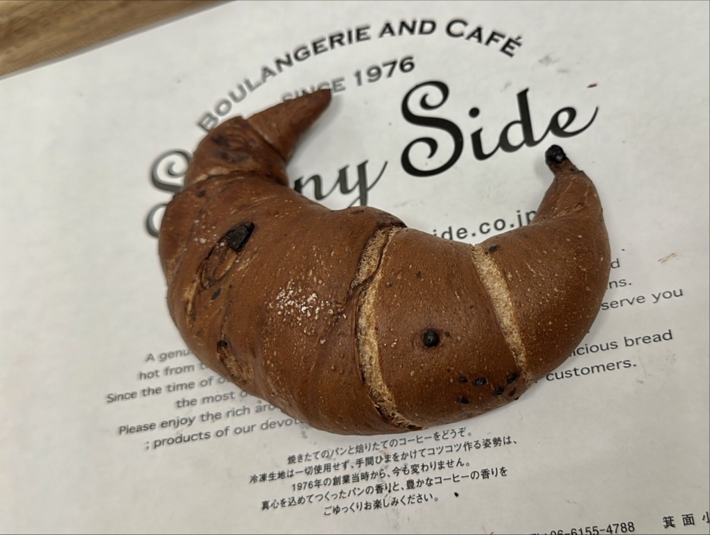 チョコチップ生地にザクッとした食感のチョコを包み、岩塩をかけて焼き上げた三日月形のチョコパンです。
