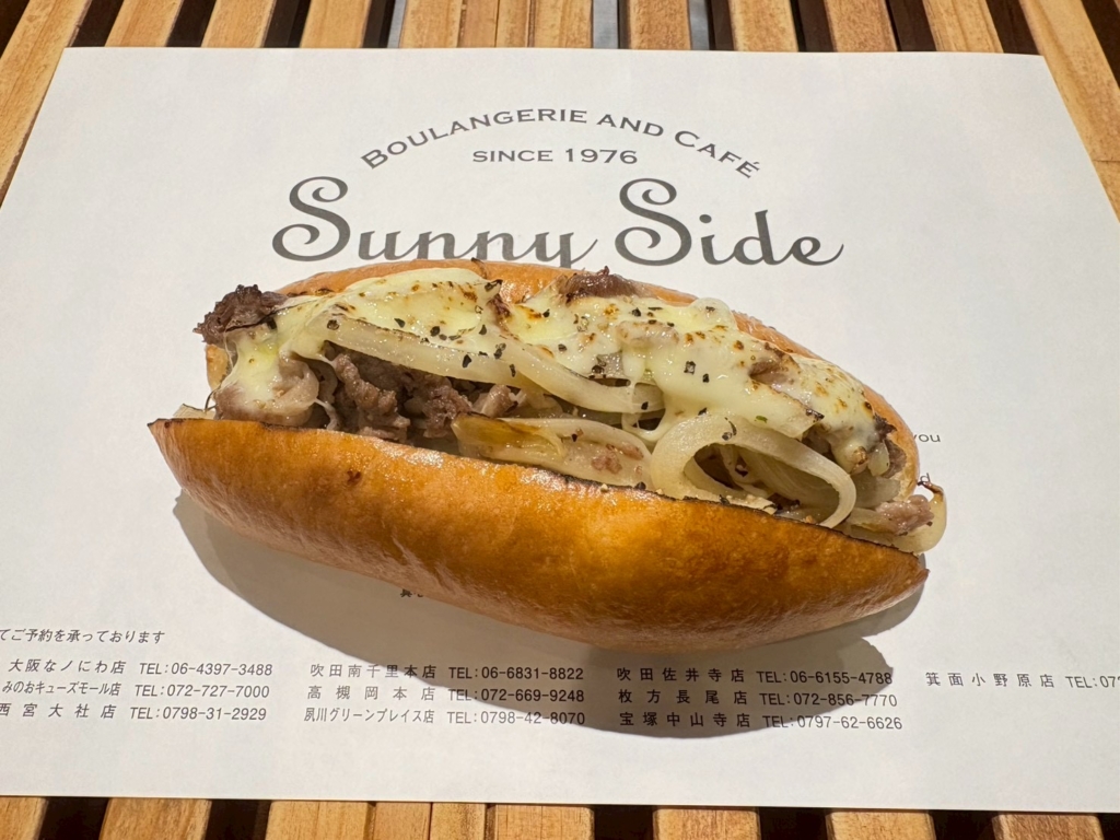 牛肉と玉ねぎを塩コショウ、ガーリックで味付けし、ドックにたっぷりとサンドしチーズをのせ焼き上げました。ボリュームたっぷりのアメリカで伝統的なサンドです。