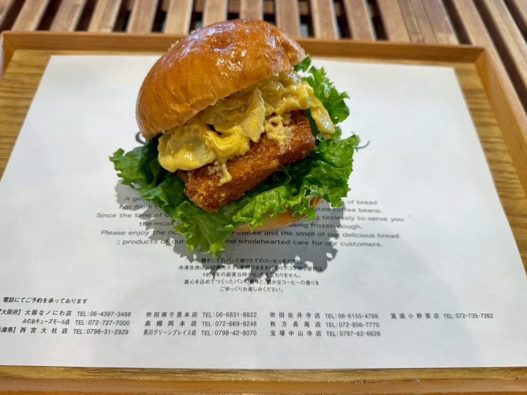 ふんわり柔らかいバンズに辛すぎないからし蓮根と白身魚のフライをサンドしました。