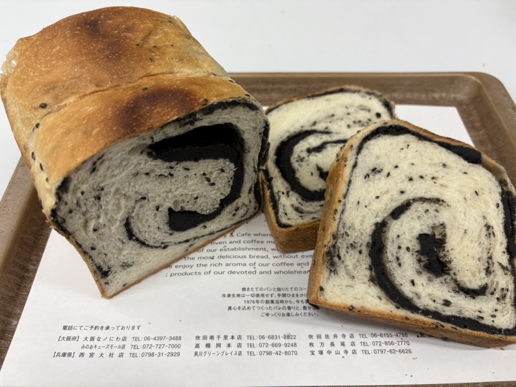 人気の角食ぱんに濃厚な黒ごまあんをたっぷり包みました。