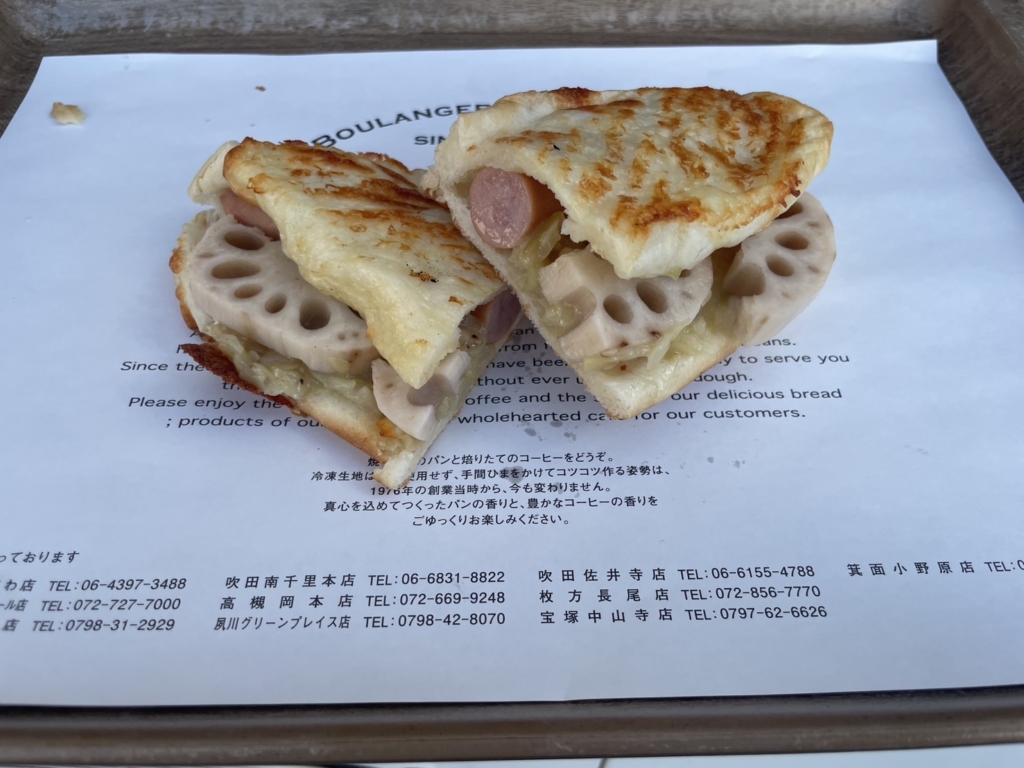 白生地に旨塩キャベツとレンコン、ウインナーを挟んだパニーニです。