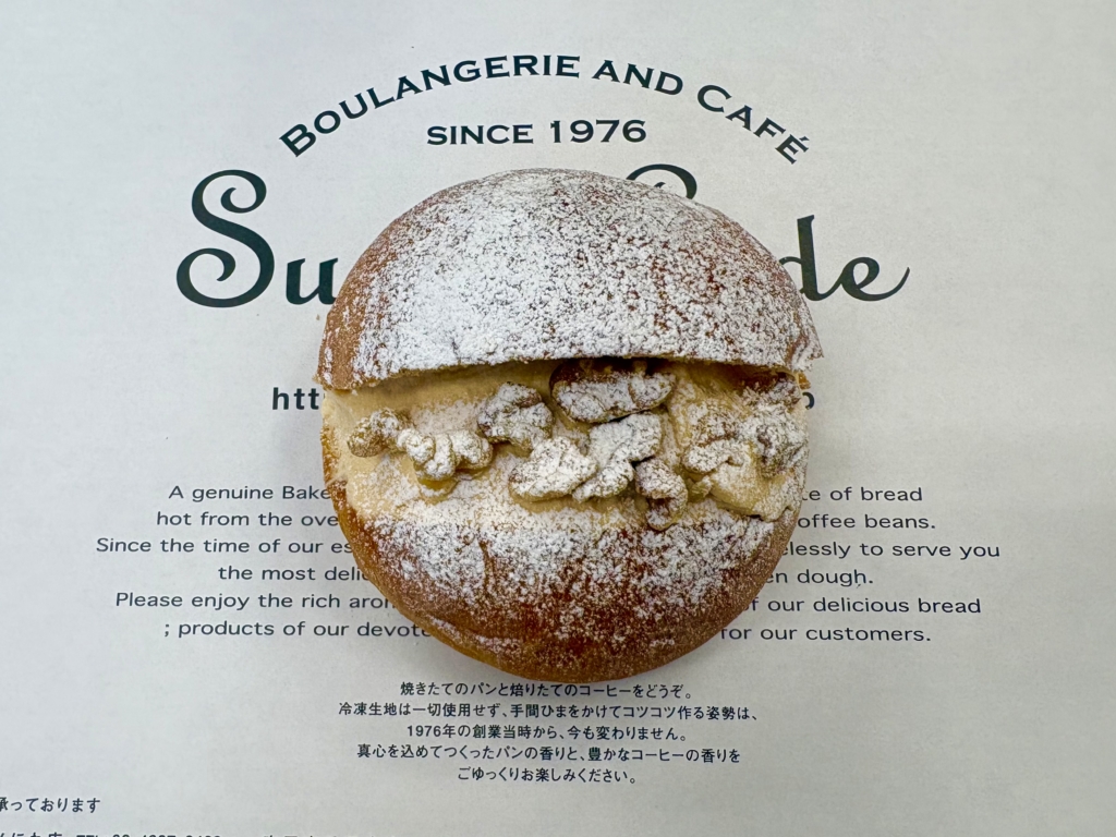 北海道産生キャラメル餡と生クリームを合わせた自家製クリームと胡桃を菓子パンにサンドしました。