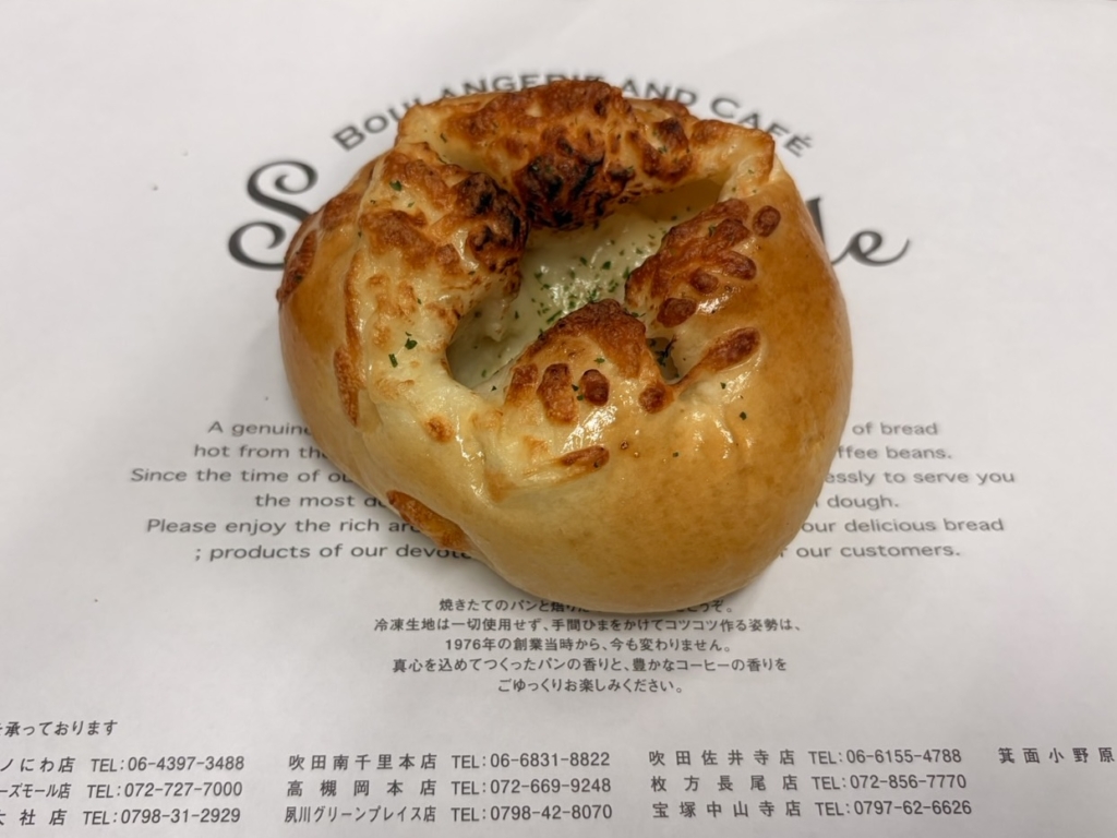 ロール生地にマッシュポテトを包んで、バターとチーズをのせて焼き上げました。