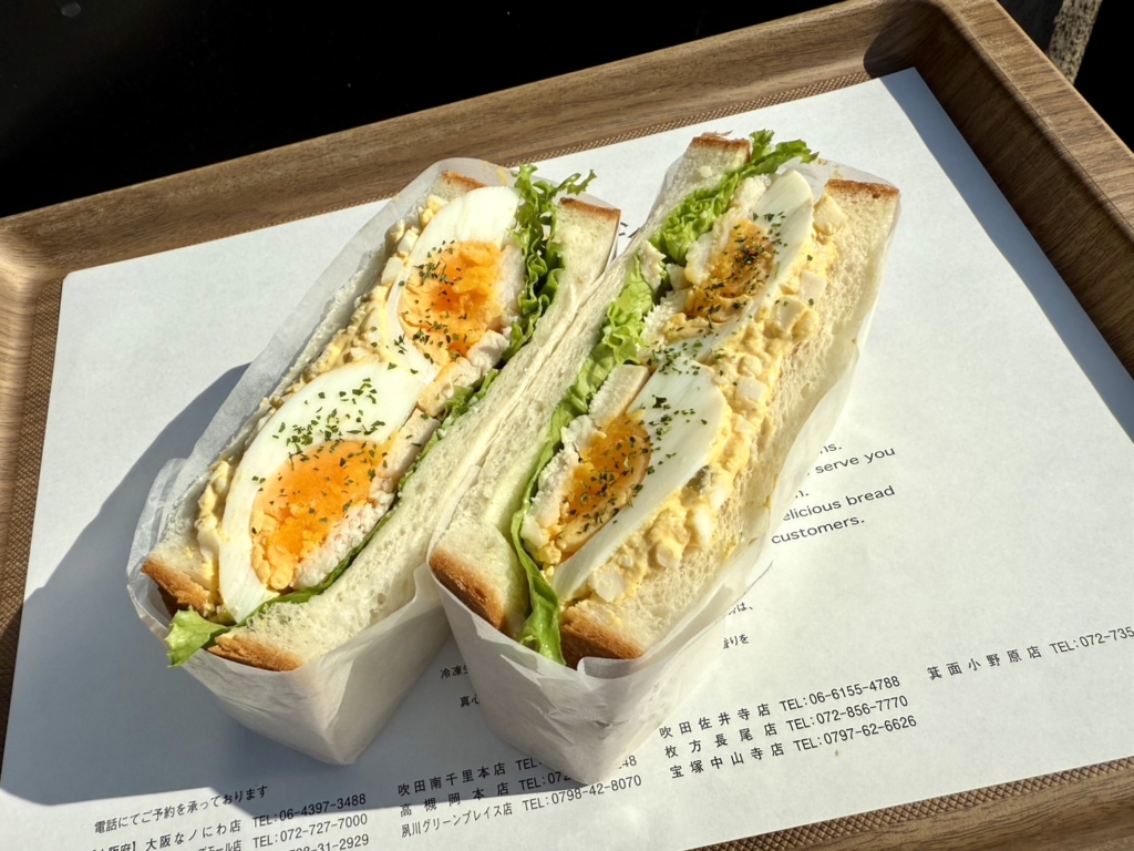 自家製たまごサラダとサラダチキンを使用したサンドです。たまごサラダにはダイス状のピクルスをアクセントに混ぜています。