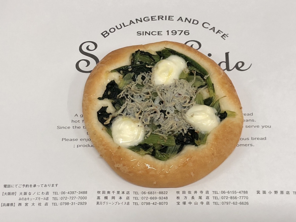 小松菜のナムルにしらすとゴーダチーズを合わせたピザです。