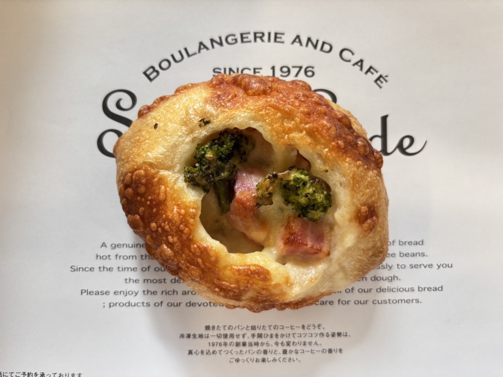 フランス生地に北海道野菜のクリームシチューをつつみ、ベーコン、ブロッコリーをのせ焼き上げました。