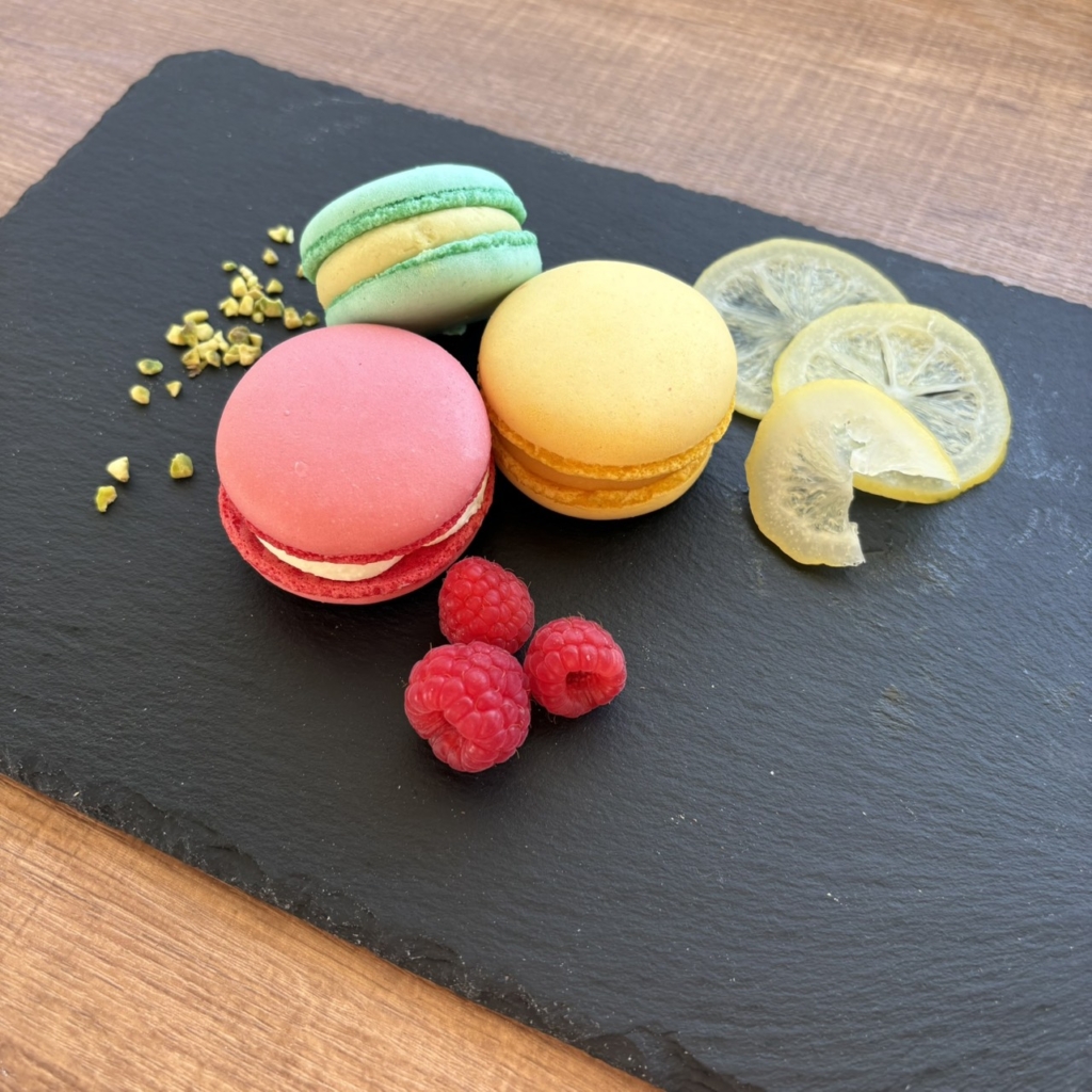 ピスタチオの優しいコクが際立ち、上品な甘さが広がるマカロンに仕上げました。