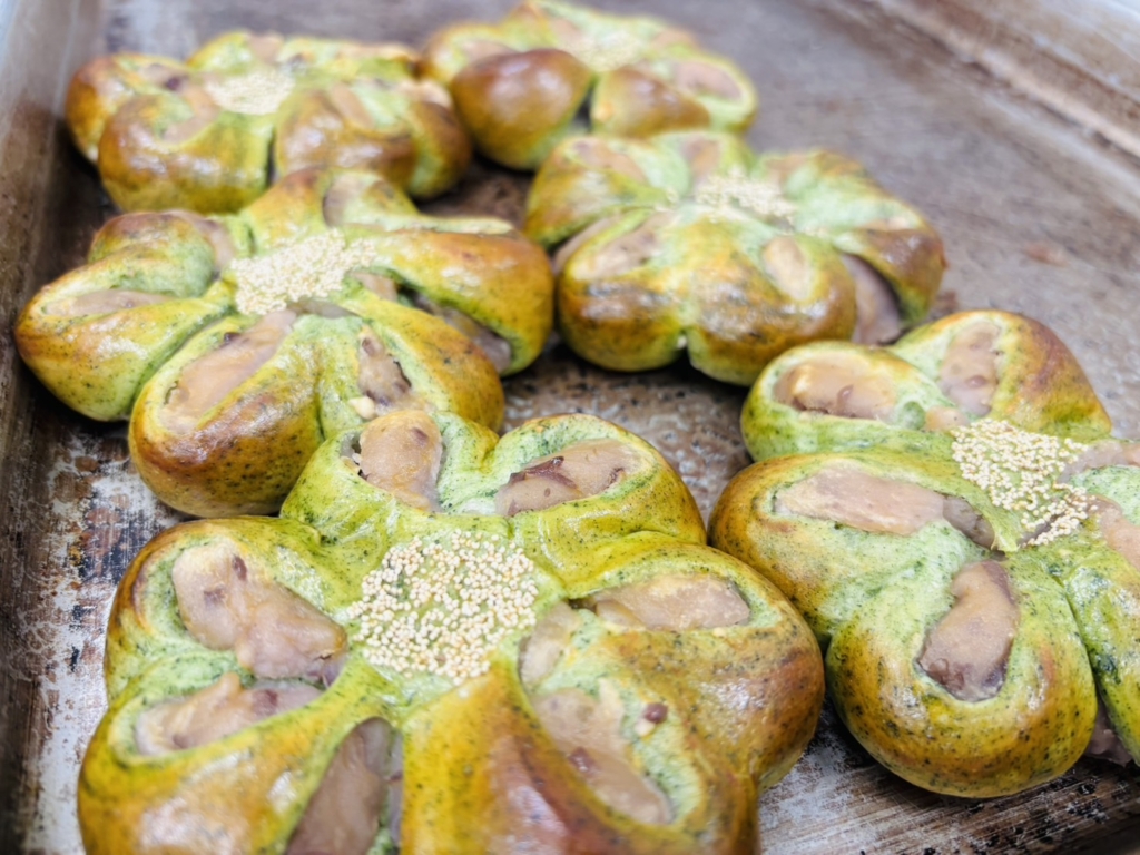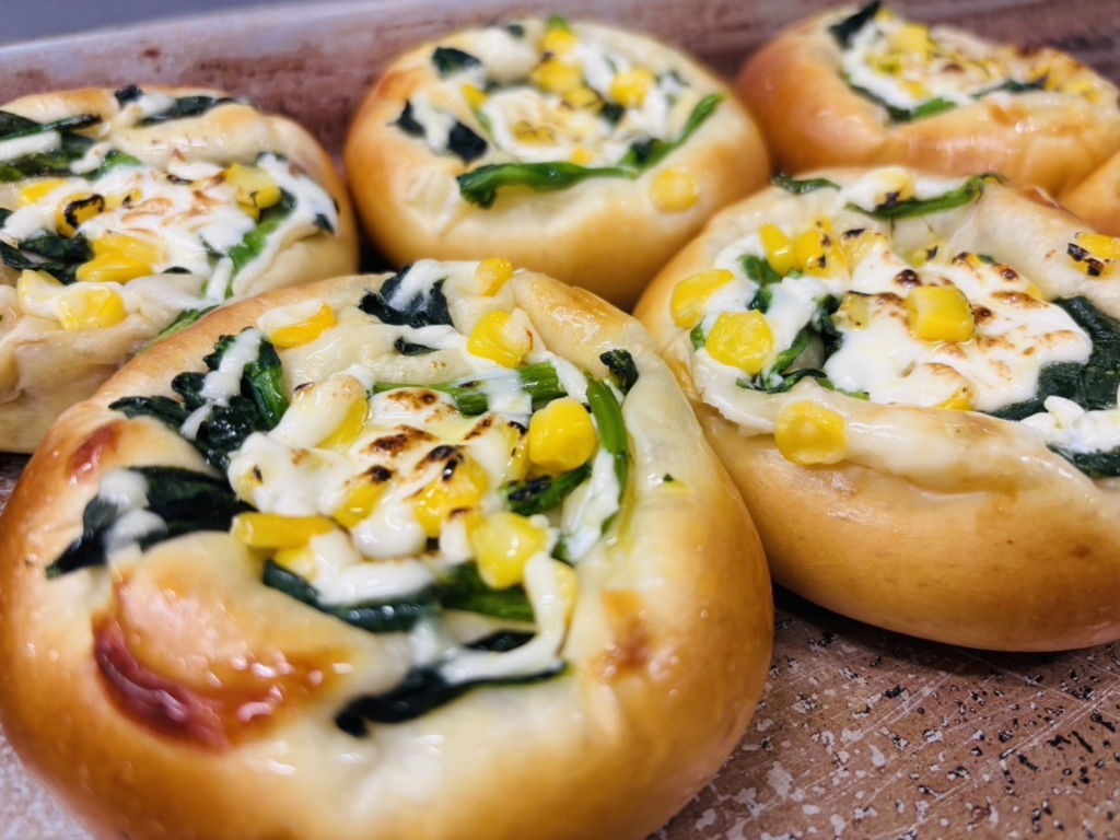 ロール生地に筍フィリングを包み込み、コーン、菜の花をトッピングし焼き上げました。ほろ苦い菜の花とシャキシャキ筍、かつお節の旨みがふんわり香り、優しい味わいが広がる一品になってます。 ishiha