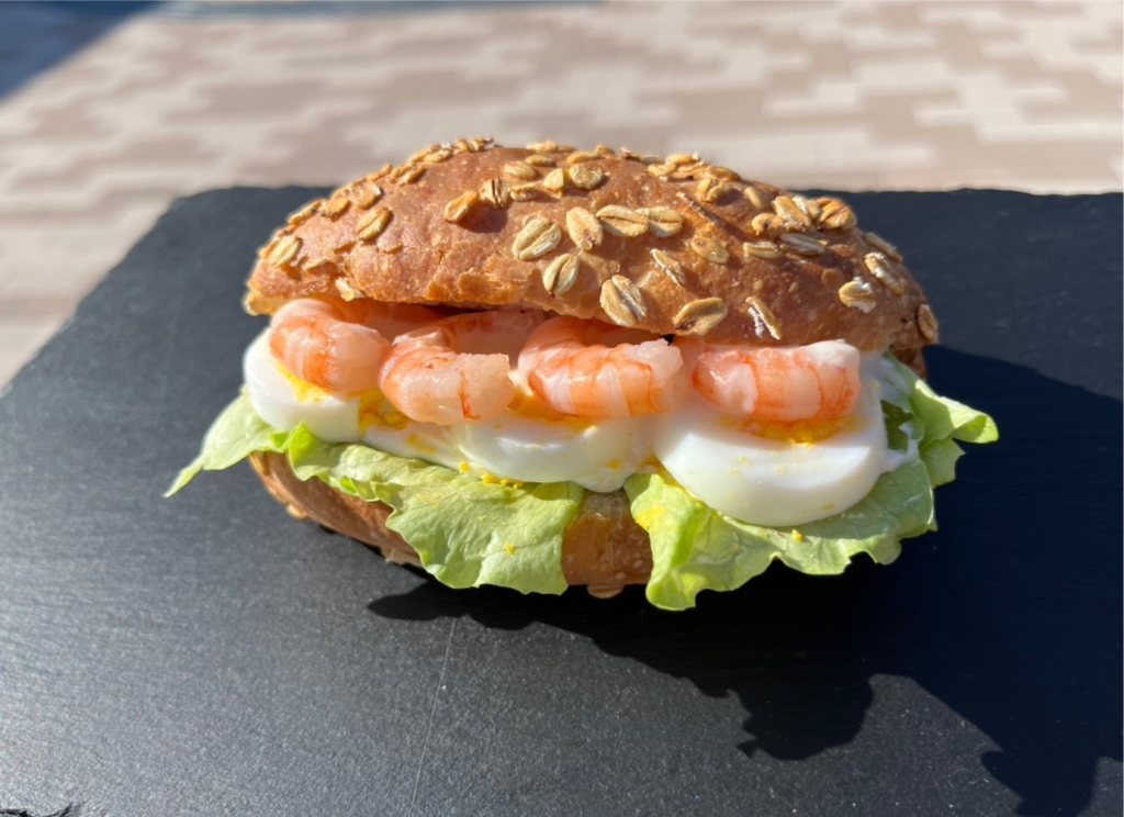 ぷりぷりのえびとクリームチーズ、卵をサンドしシーザードレッシングで仕上げました。
