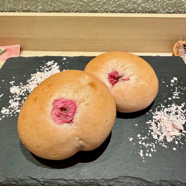 ベーグル生地に桜餡とクリームチーズを包んで焼き上げました。