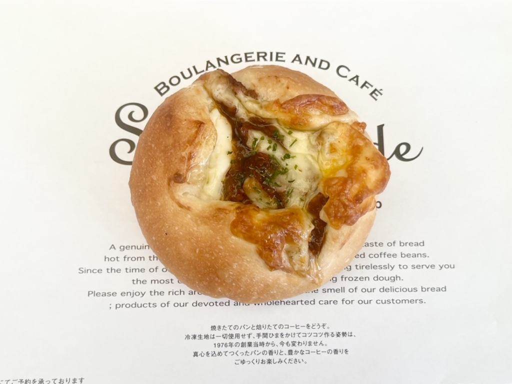 食パン生地の中に、キリフィリングを絞り、ボロネーゼ、モッツァレラチーズをのせ焼き上げました。
