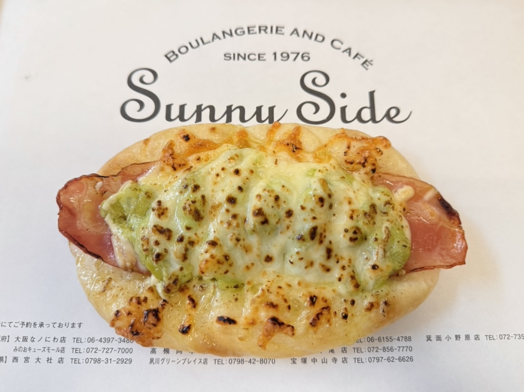 食パン生地に枝豆入りポテト、ベーコン、チーズをのせて焼き上げ、仕上げに炙りました。