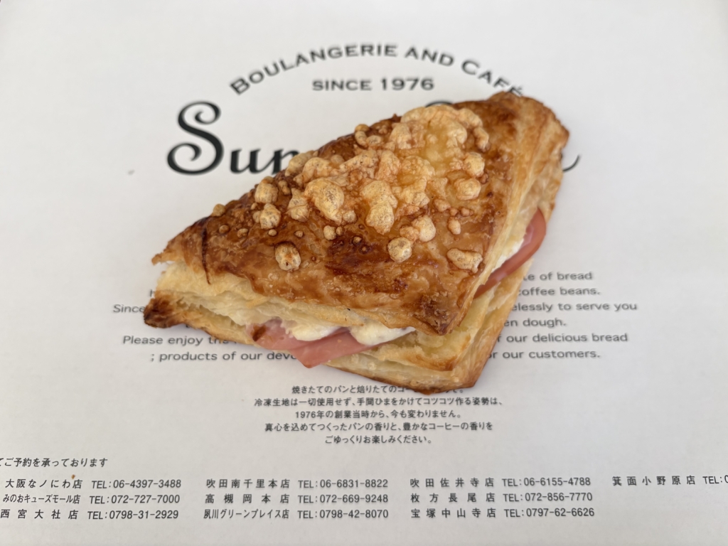 サクサクのクロワッサン生地に、ベーコンポテサラ、ハムをサンドして焼き上げました。