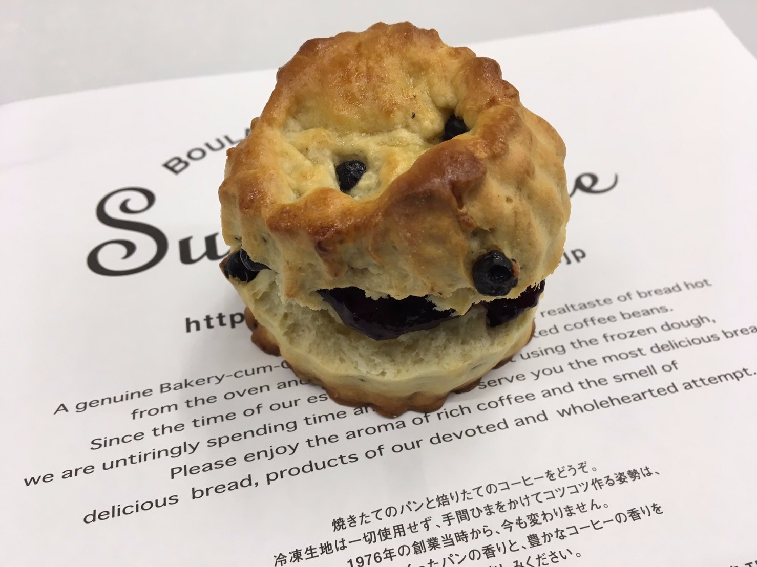 ワイルドブルーベリーをたっぷりと練り込んだミルクスコーンにブルーベリージャムをはさみました。