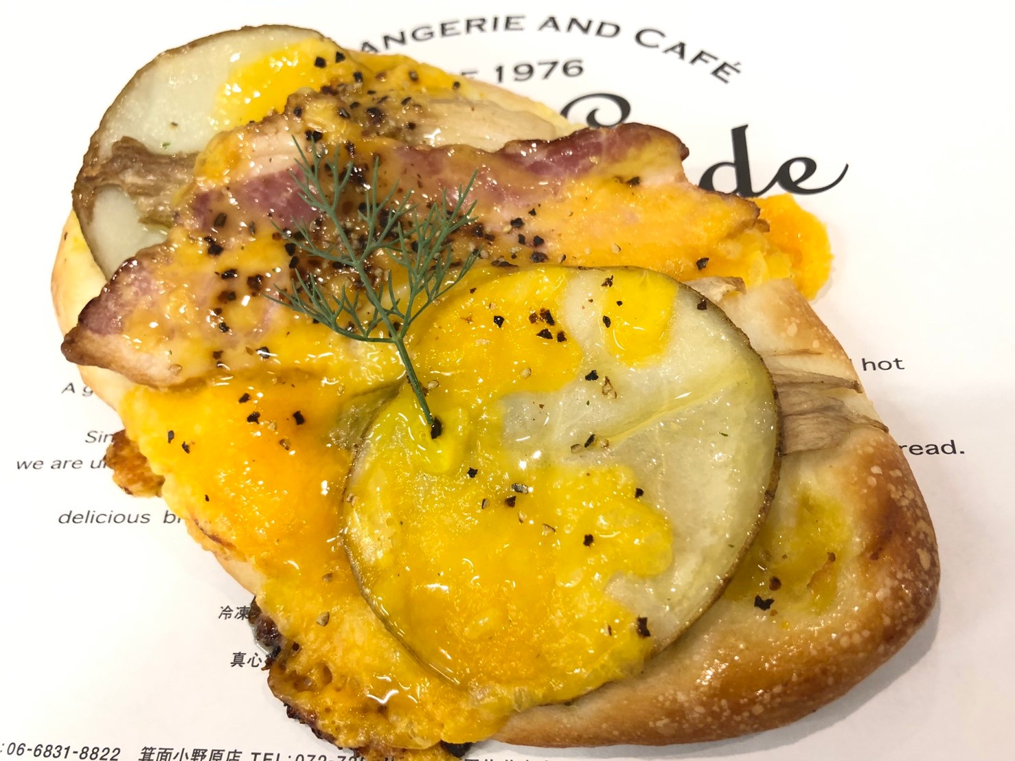 食パンの生地に皮付きジャガイモ、イカの塩辛を包み仕上げにバター、