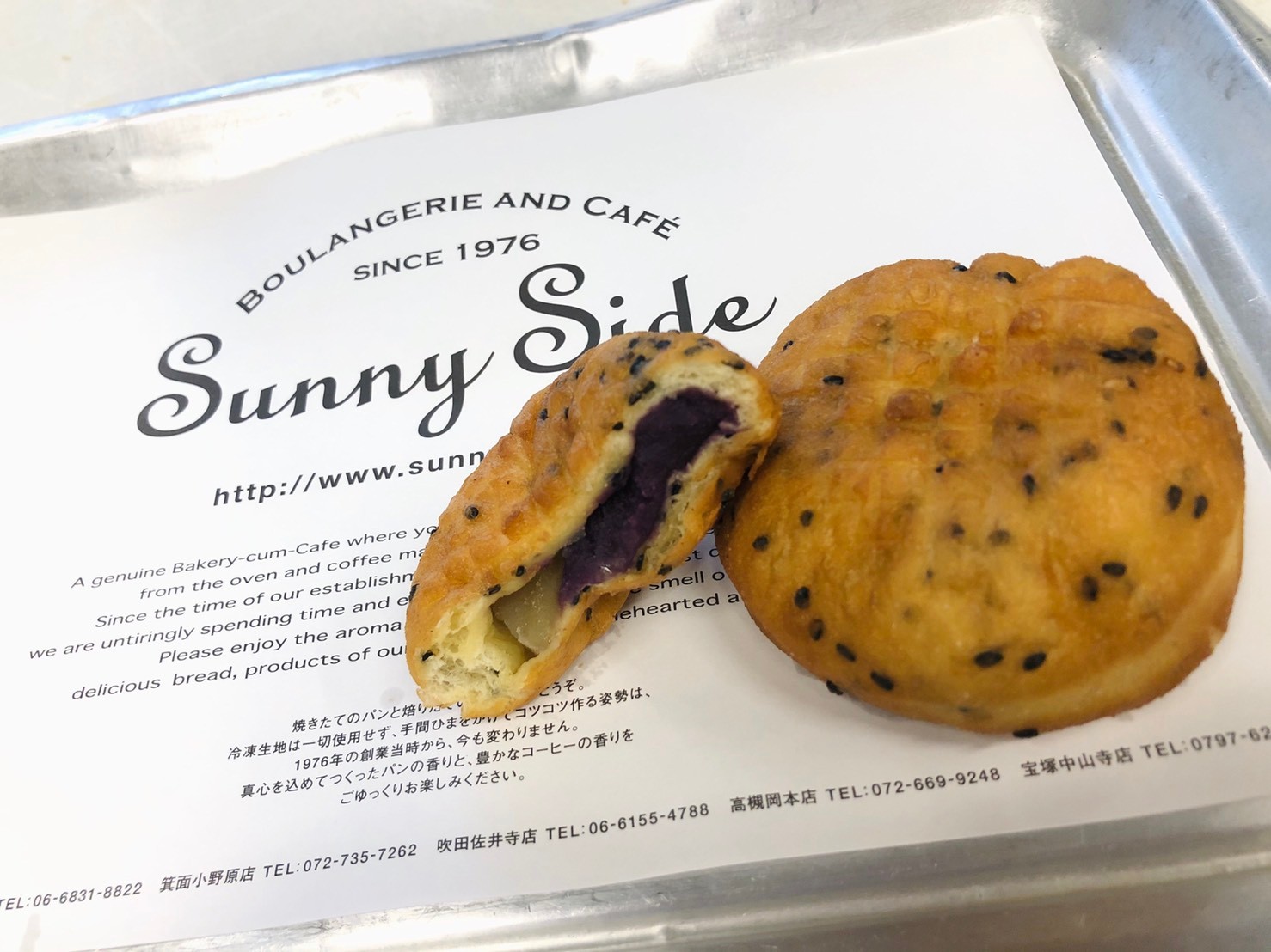 黒ごまを練り込んだ生地に紫芋あん、さつまいもを包み揚げました。
