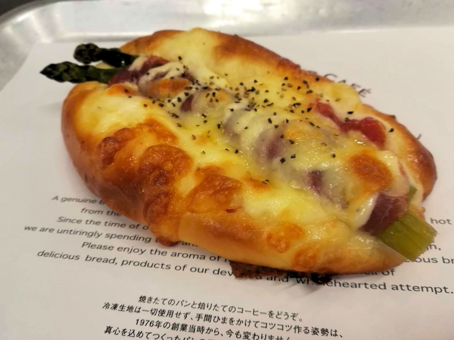 たっぷりの春野菜、ベーコン、モッツアレラチーズをのせてバジルマヨソースで仕上げました。