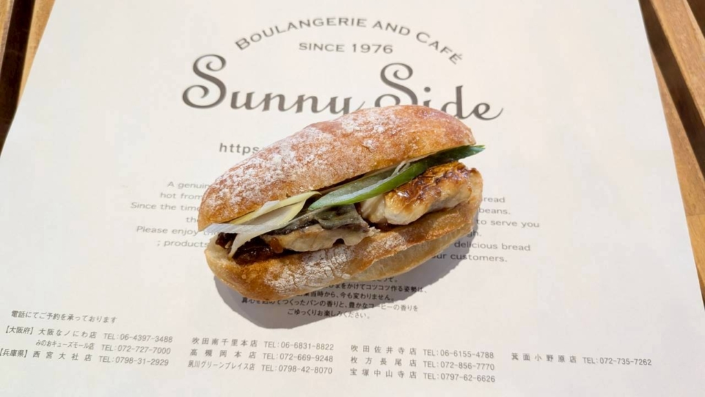 フランスパンにネギ味噌をぬり、サバ、白ネギをサンドしました。