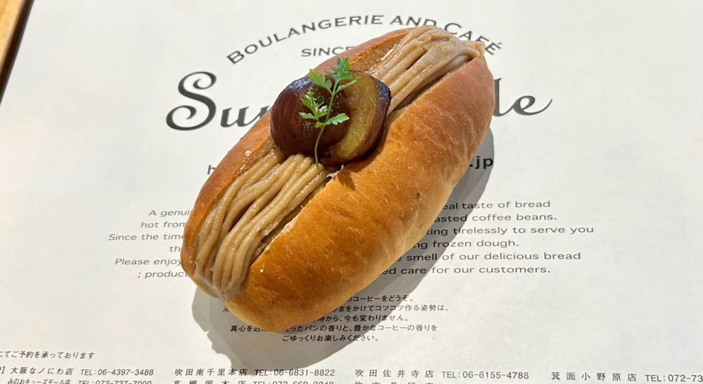 ドックに、刻んだ甘栗と栗餡を絞り、ホイップクリーム、モンブランクリームを絞り、和栗を乗せて仕上げました。