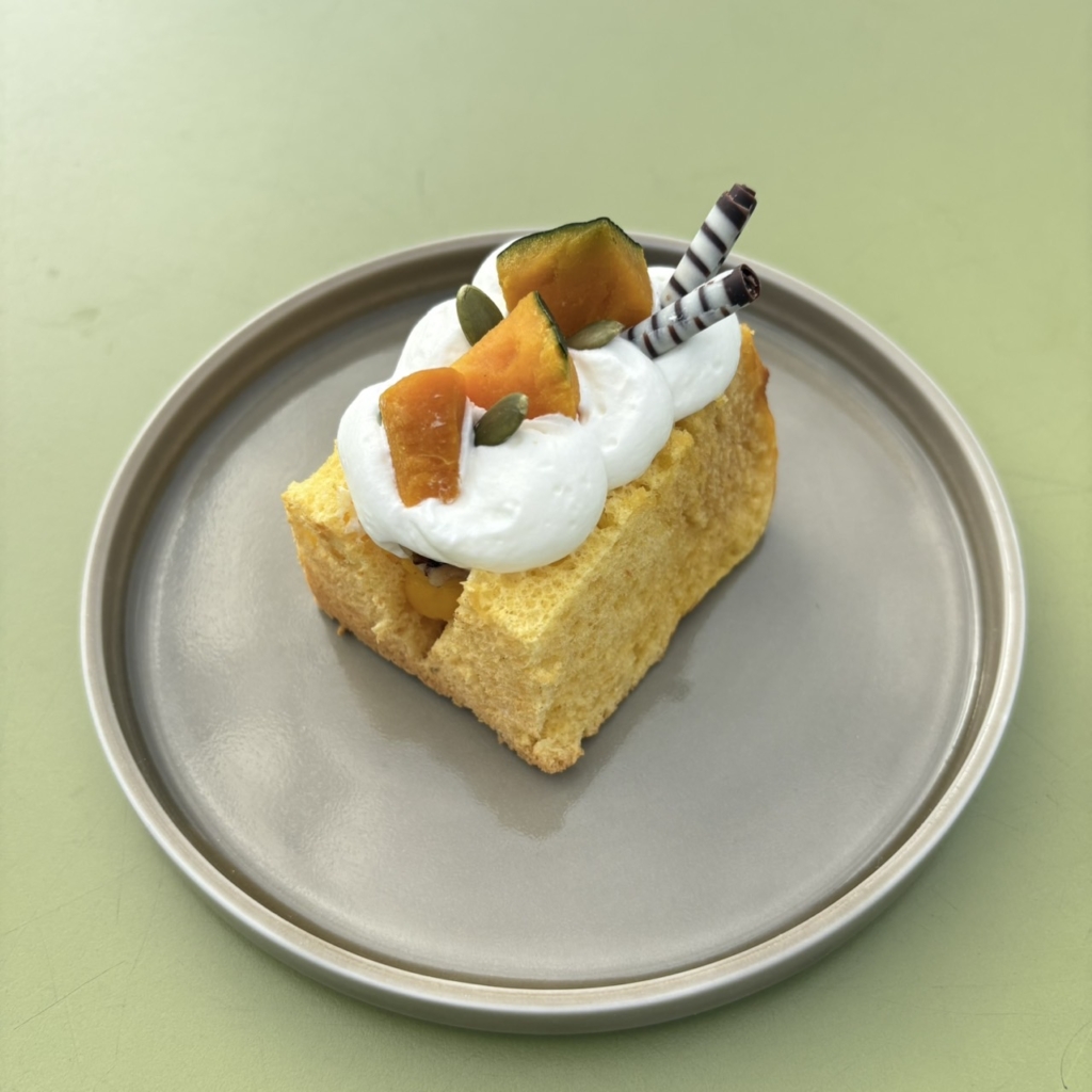 かぼちゃがふんわり香るシフォン生地に濃厚なかぼちゃカスタードとくるみを合わせた秋の始まりを感じる商品です。