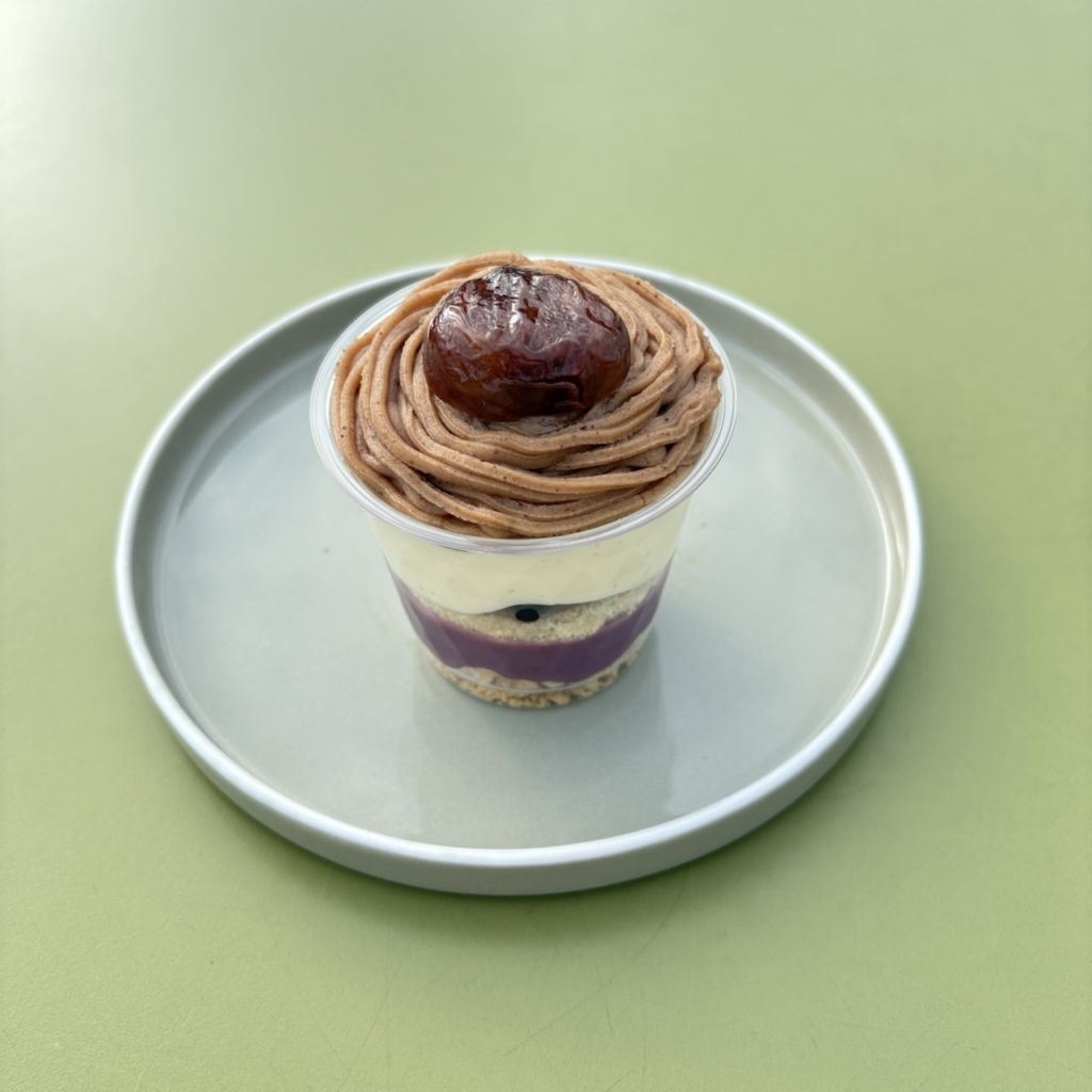 ラム酒香るマロンクリームと酸味のあるカシスにマスカルポーネクリームを合わせたティラミス風モンブランです。