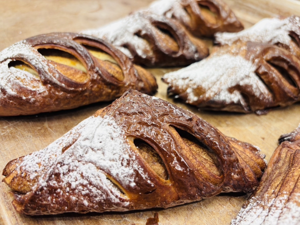 クロワッサン生地にチョコシートを折り込みました。中にはサクチョコクリーム、八つ割アーモンドを包み焼き上げました。 サクサク感がたっぷりの食感になってます。yama