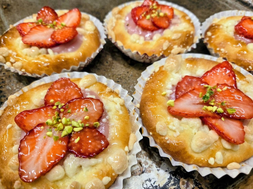 とちあいか、ベイクドチーズのクリームを絞り焼き上げ、いちごを乗せました。 miki